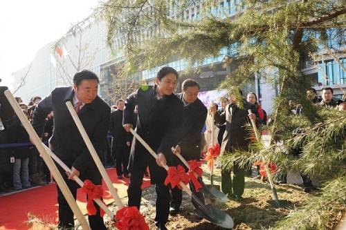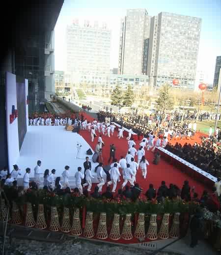 在現(xiàn)場(chǎng)可以看到,一個(gè)巨大的幕布從大廈西側(cè)的頂樓垂下,上面印著百度數(shù)千名員工照片組成的笑臉,使過往的行人都感受到慶典儀式的喜慶氛圍。儀式上,300名百度員工及百度愛好者們共同出演“百人秀”,通過跑動(dòng)在大廈前的廣場(chǎng)上排出一個(gè)個(gè)活潑生動(dòng)的慶典圖案,更將整個(gè)活動(dòng)的氣氛推向高潮。最后,李彥宏和員工及網(wǎng)友代表一起,在大廈前種下一棵象征基業(yè)長青的雪松,培上百度各地網(wǎng)友取來的五岳之土,并以長江、黃河之水澆灌。