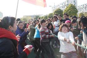 寒風(fēng)簌簌,陽光絢爛。在2008年12月6日這個寒冷而富有激情的日子里,我司第一屆冬季運動會火熱開展。為了充分調(diào)動大家的激情,此次比賽項目的策劃可謂煞費苦心。除了籃球賽、4*100接力賽、100米短跑、乒乓球比賽、等傳統(tǒng)比賽項目外,新增了很多趣味比賽項目如:趕小豬、兩人三足跑、夾球跑……大家玩得不亦樂乎!為了充分調(diào)動大家積極性,我們?yōu)檫\動健兒們準(zhǔn)備了豐富的獎品,有棉被、電蒸鍋、電熱水捂、手套、圍巾、領(lǐng)帶、保溫杯、指套裝、收音機、筆筒等等。我們還特設(shè)抽獎環(huán)節(jié),每項比賽的前三名都會獲得一張“金卡”,拿著金卡可以抽獎,中獎率為100%,未得金卡的選手們也將得到一份精美禮品。