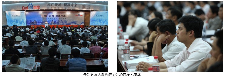 6月10日,陰雨綿綿。“營銷中國行”活動在鹽隆重拉開帷幕。此次活動旨在探討如何提升企業(yè)網(wǎng)絡營銷能力來促進地方經(jīng)濟繁榮,受到政府、學術界、商界的高度重視。市經(jīng)信委主任羊維達、臺灣因特網(wǎng)營銷研究協(xié)會秘書長陳定震、百度公司服務管理部總監(jiān)任建斌、百度公司渠道部銷售總監(jiān)欒天、百度公司渠道部渠道經(jīng)理曹宇等35位嘉賓以及500多家鹽城市重量級企業(yè)家代表出席了活動,共同見證這一盛況!