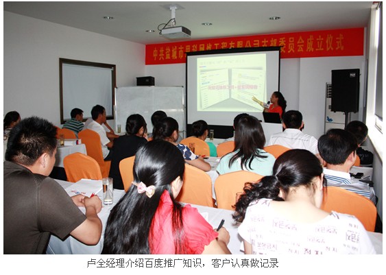 7月鹽城時而酷暑難當;時而天高氣爽;時而烈日當空;時而暴雨傾盆。16日下午,整個鹽城市區(qū)深陷暴雨包圍,然而密集的雨滴并不能澆滅客戶對百度推廣知識的渴求熱情。經過思科公司客服部、市場部兩大部門多位員工的細密而周到安排,14:30左右,主題為“新媒體 精準互動新營銷”百度推廣客戶交流會在公司會議室順利召開。